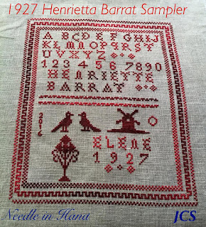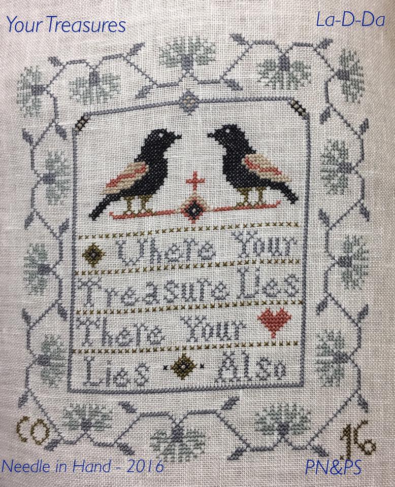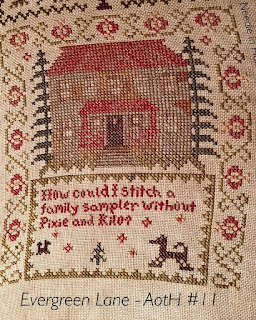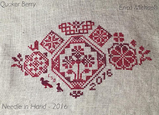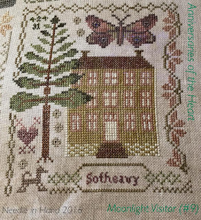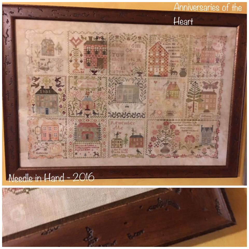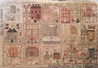 Last year I said my focus this year would be completing Blackbird Designs, Anniversaries of the Heart. It hasn't worked out that way, but at least one has been done, and another is on the q-snaps. For anyone who isn't familiar, this was a 12-part series started in 2010 that was designed to recognize and honor various family members. I chose to stitch each of them on one piece of 32ct Autumn Fields linen. I believe 30ct was recommended, but if I were starting it now, it would be on 40ct...