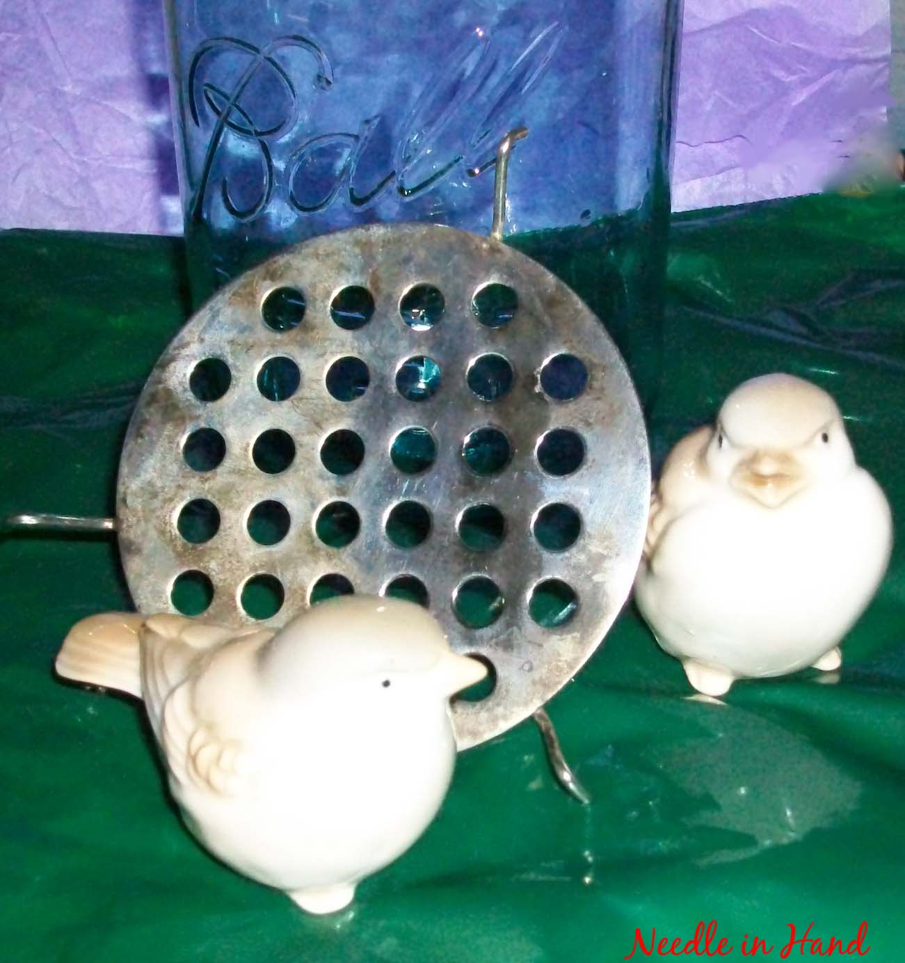 I saw this little silver frog and thought it had to come home with me! I’ve seen those wirey, pin types, the glass and pottery ones, but never noticed the silver ones. It has little ‘legs’ that would hold it in place on the dish. It’s about 4 ½ inches. And these darling little birds. I love their tan/neutral colors. Have I told you that at one time I had this totally irrational fear of birds? I don’t really remember, but family says some nesting birds attacked me at Grandmother’s when I was a child, so that must be the cause for it. I was so afraid that I didn’t even like looking at the images of birds – but the real fear has been overcome, and the shelf above me at the computer desk is now filled with them! I don't think I've posted the finished photo of The Tree with Birds, so here it is.I’m looking forward to visiting with Amy’s PALs at the French Hen in Manning on June 4. Hope to see y'all there!